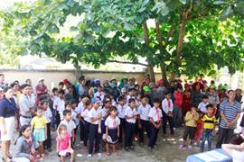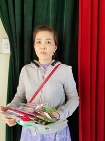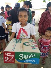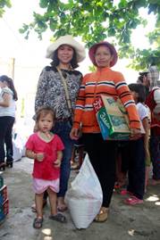 Mrs. Huynh with a family | Some happy faces with the gifts |