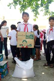 HUMANITARIAN MISSION TRIP IN HOA BAC Thanks to the donation of Mrs. Jenifer Loan Huynh, a Vietnamese American sponsor of our two families, L.O.V.E had an opportunity to bring 100 gifts including a bag of 15 kg of rice and a box of instant noodles to Hoa Bac commune, one of the poorest and remote areas of Da Nang city. 80 children from Hoa Bac elementary school and 20 poor households living nearby were benefited from this Humanitarian Mission. We couldn’t imagine that we, the donator, two L.O.V.E’s staff and two volunteers received such a cute and innocent welcome from the children with so many smiles and happy faces; one of the boys willingly sang a song to welcome us also. We then distributed the gifts and interacted with them and families for a while and it turned out that all parties had a few great happy hours. The happy smile also appeared on the donator’s face and she shared that she definitely wanted to do it again. She would perhaps not be there next time but she has L.O.V.E. After that, we visited her two sponsored families. To view the video of the mission, please click here. |