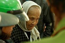A volunteer helped an old lady | Two of many needy old ladies came | Phuong, the pastor and the two old ladies | LOVE’s team and the local cadres |