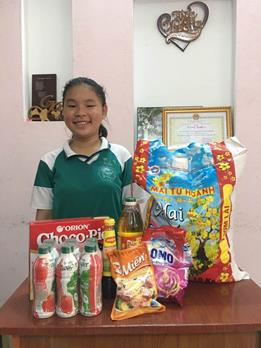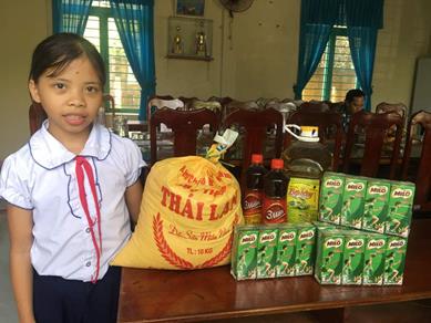 | Thao My with a household basket | LOVE and the sponsor sent the deepest condolences to Hong for her loss. LOVE’s staff visited her father’s funeral. |
