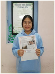 We welcome 3 new girls who received 1st stipend and letter from sponsor Left to right: Tuyet, Vy and Thuong |