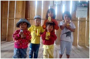 Children with a syrup-type supplement, donated by the Vietnamese pharmacist |