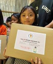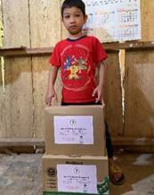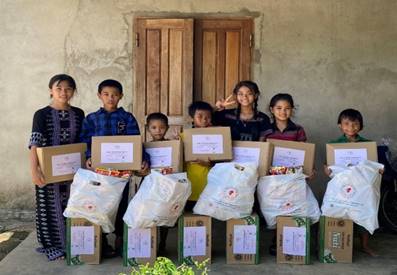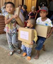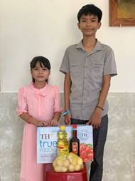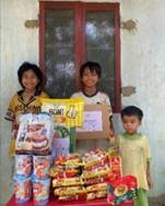 Food support for Thien An, Tan Bao and Lac Giao (from left to