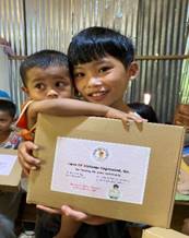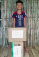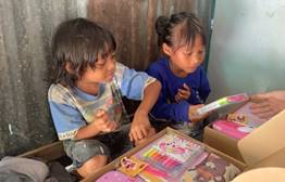 gift includes milk, confectionery, a schoolbag, notebooks and